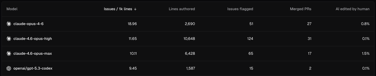 You can now measure AI coding output across every tool your team uses. Line-level attribution shows what's AI-written, what's human-edited, and whether AI-heavy PRs ship with more or fewer issues.